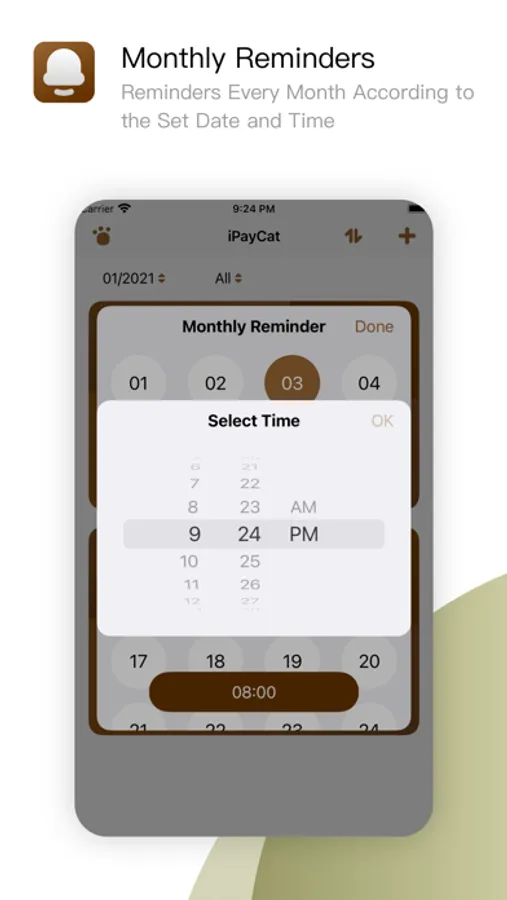 @ Monthly Reminders: Reminders Every Month According to the Set Date and Time.