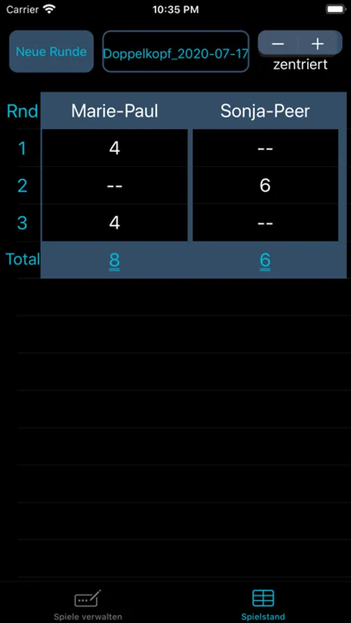 Nicht so mit der App, die hat man mit dem iPhone oder auf dem iPad immer dabei und das Spiel lässt sich einfach verwalten: Alphabetisch und mit Datum, wenn man möchte. Einfaches Anlegen, Wiederfinden und Löschen von Spielen, Eingabe von Spieler oder Teamnamen und Rundenergebnissen - was braucht man mehr für Rome, Canasta, Skat, Doppelkopf oder Schafskopf usw...