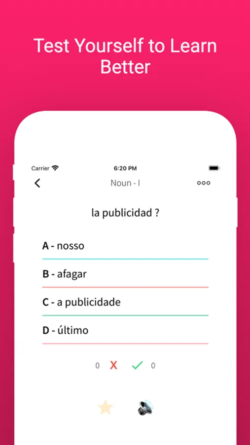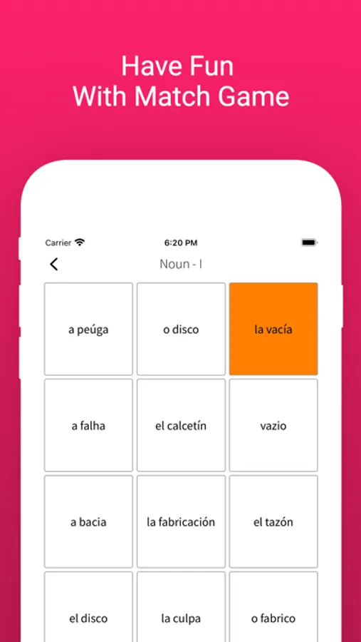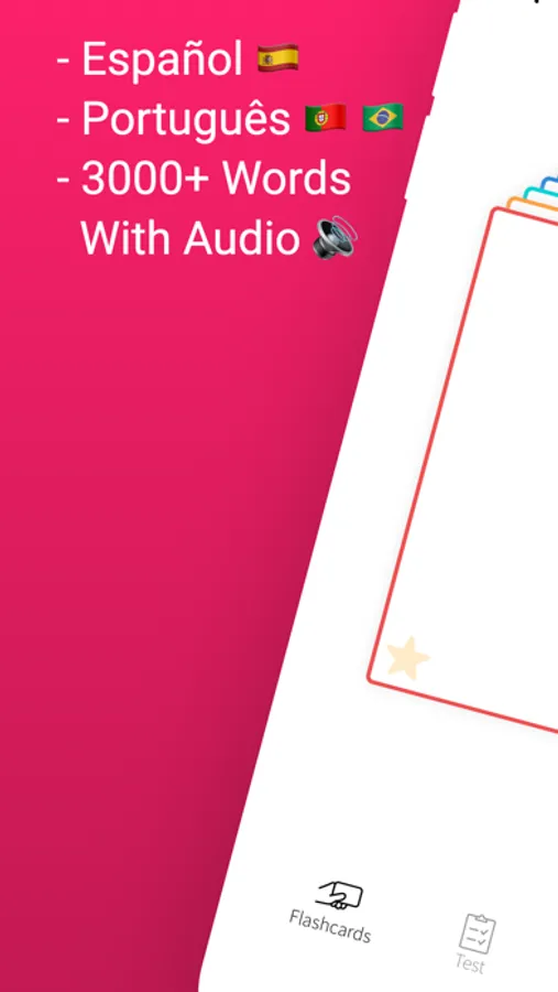 Expand your language skills with this app, the ultimate Spanish-Portuguese vocabulary learning app. Unlock the power of 3000 commonly used words through an immersive learning experience designed to boost your language proficiency. Whether you're a beginner or an advanced learner, our app offers three dynamic features to accelerate your progress: Flashcards, Word Tests, and the exciting Match Game. Start your language journey today and become a fluent communicator in both Spanish and Portuguese!"