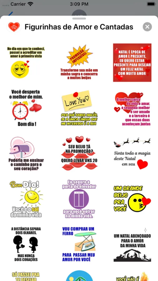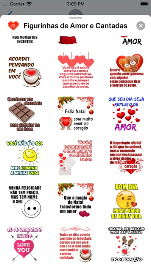 Pacotes de figurinhas (stickers) com frases de amor, cantadas e declarações românticas para enviar para aquela pessoa especial.
