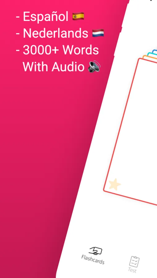 Expand your language skills with this app, the ultimate Spanish-Dutch vocabulary learning app. Unlock the power of 3000 commonly used words through an immersive learning experience designed to boost your language proficiency. Whether you're a beginner or an advanced learner, our app offers three dynamic features to accelerate your progress: Flashcards, Word Tests, and the exciting Match Game. Start your language journey today and become a fluent communicator in both Spanish and Dutch!"