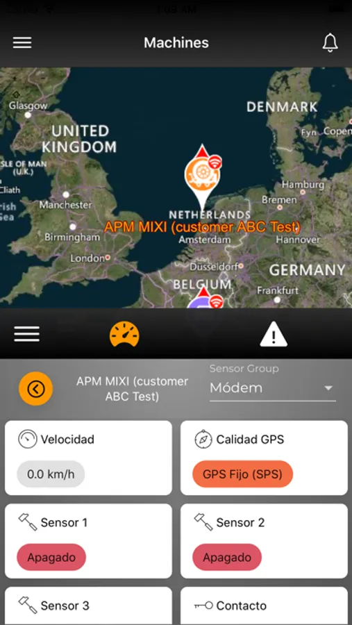 AP Machinebouw app provides real-time machine monitoring, location history and alarms.