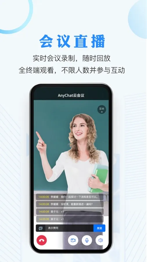 AnyChat云会议提供多人音视频通话、会议管理、消息管理、互动白板、文档共享等核心功能,支持会议全程视频录制、一键会议分享。适用于远程培训,远程医疗,远程协助办公,在线教育等多种应用场景,解决远程即时沟通难题。