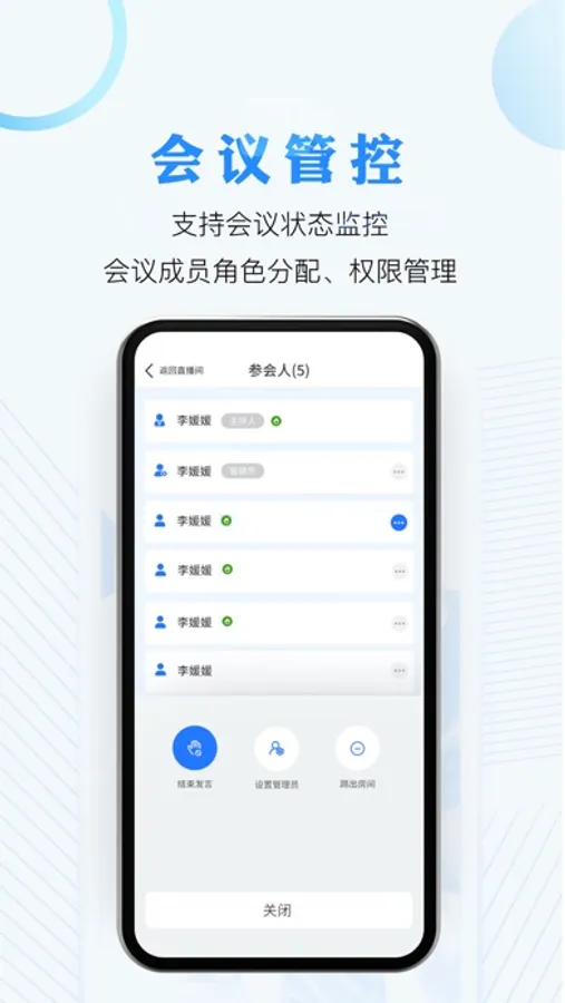 根据不同的应用场景灵活选择语音会议或多人视频会议形式,支持单画面、双画面(并列、画中画)、九宫格等多种参会人视频画面展示形式,同时支持不限人数的语音通讯。