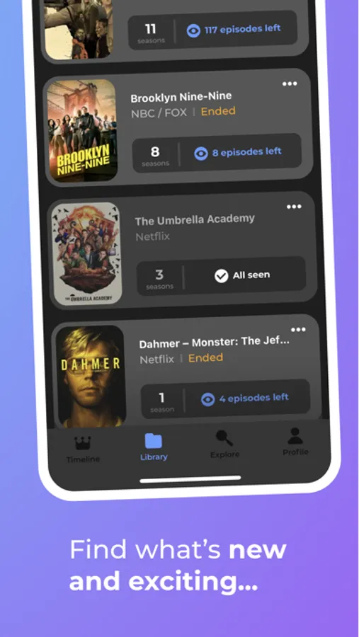 Easily keep track of all your TV shows in one place - be notified when and where new episodes are released, and track what you have already seen.