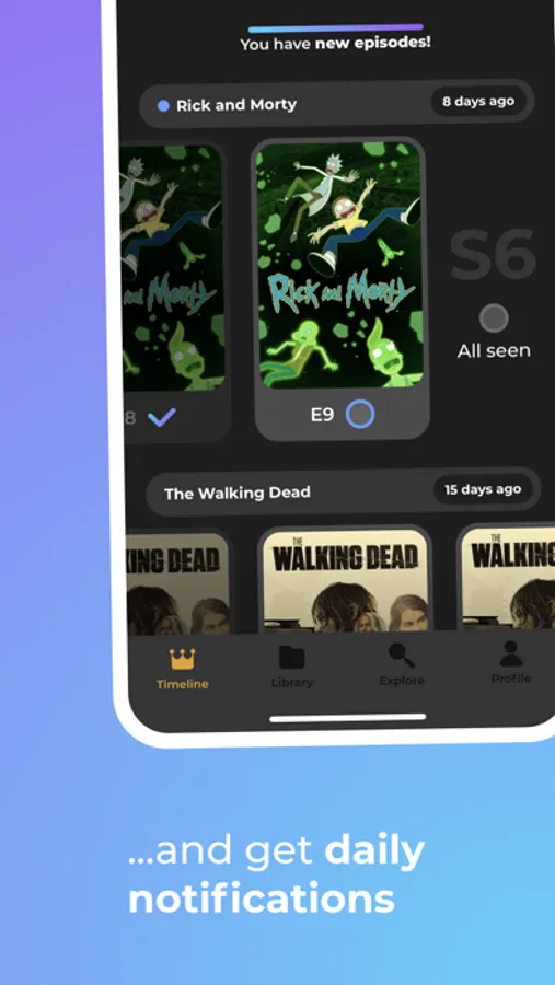 Choose when and how you want to be notified of new episodes being released. Or not at all. We're not going to tell you how to live your life.