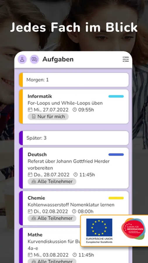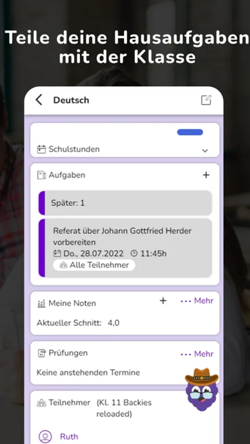 Hausaufgaben übersichtlich im Blick, Stundenplan sofort griffbereit und alles synchronisiert mit deiner Klasse (wenn du magst). So muss nur einer den Schulplaner verwalten und alle sind auf dem Laufenden.