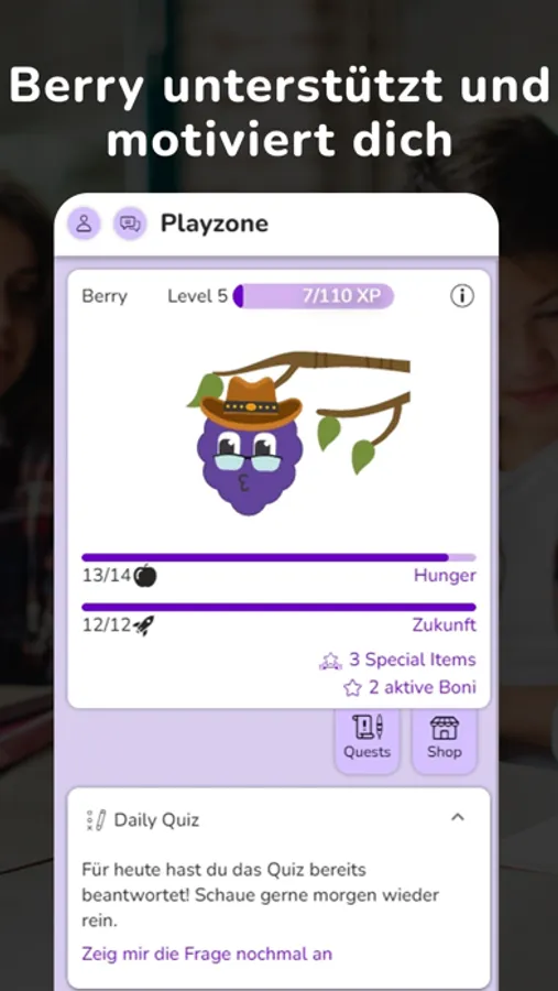 • Sammle berry-Coins und kaufe dir davon einen neuen Style für deine App (z.B. neue Hintergründe)