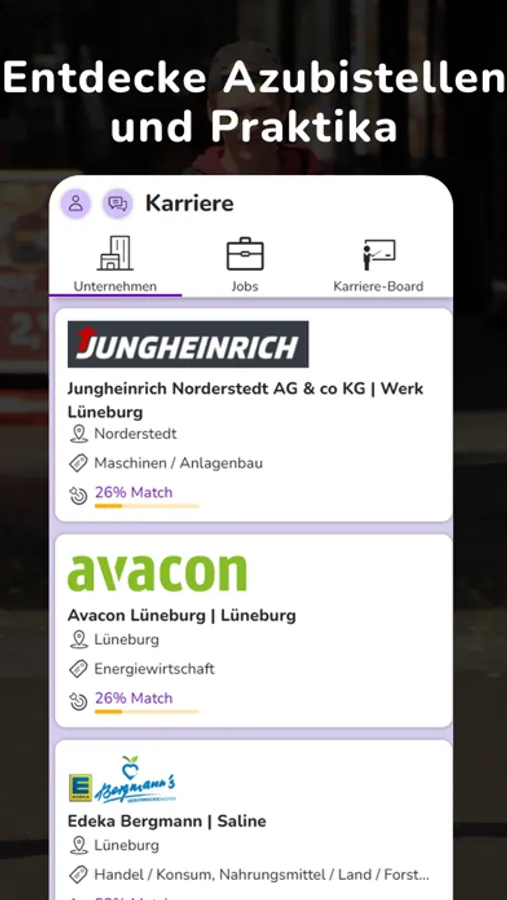 • Du hast auch die Möglichkeit dir Unternehmen, die dich interessieren, anzeigen zu lassen