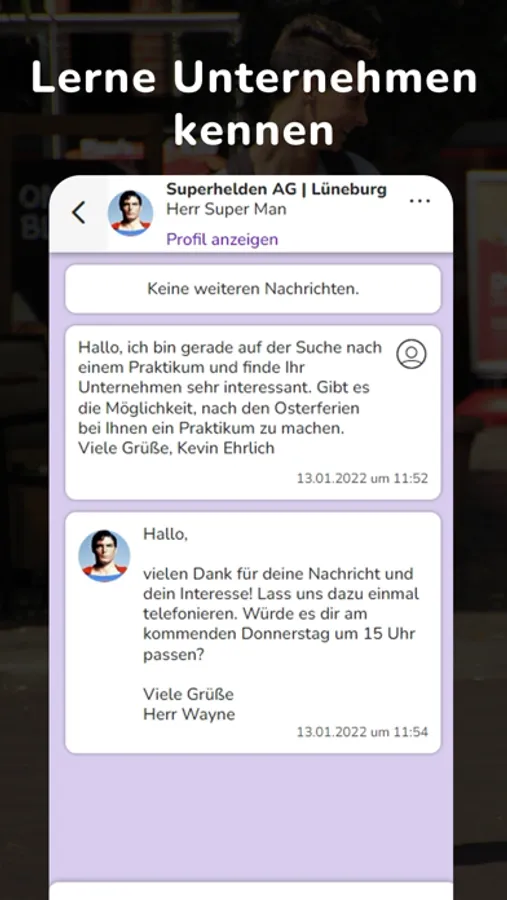 • Dein Name und dein Profilbild werden den Unternehmen dabei nicht angezeigt, so bleibst du bei der Kontaktaufnahme anonym
