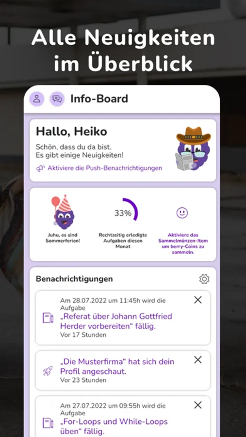 • Wenn ein Schüler Hausaufgaben veröffentlicht, hast du sie automatisch auch in deiner berry2b App
