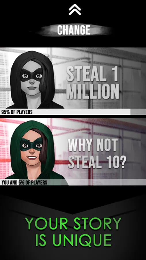 Join a community of players with eclectic profiles and tastes. Every choice you make leaves a mark in Robin’s story. Once you've made your choice, it gets included in the community’s and you get to have a look at the choices made by other players. Act like a rebel or blend in with the crowd? It’s your call!