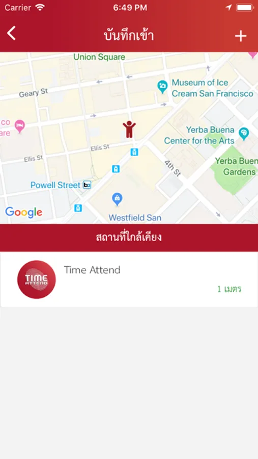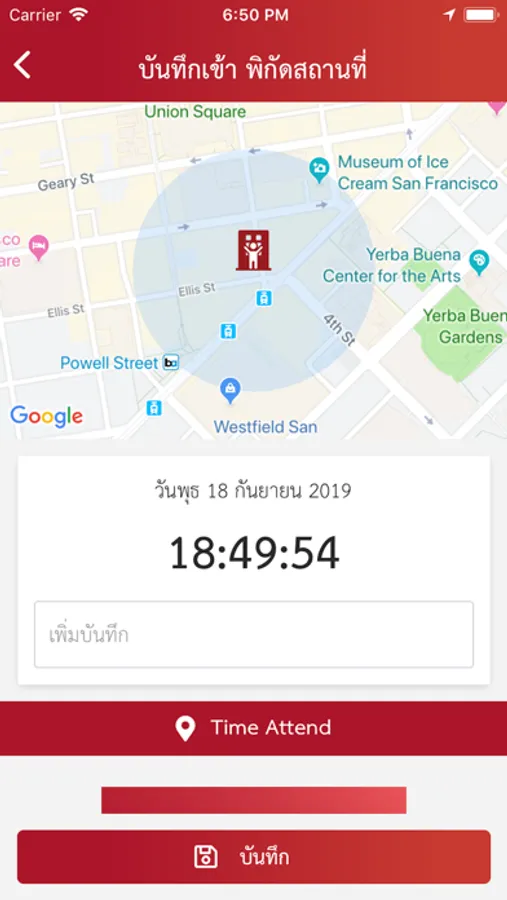 - บันทึกเข้า-ออก ด้วย พิกัดสถานที่ (กำหนดจากระบบหลังบ้าน)