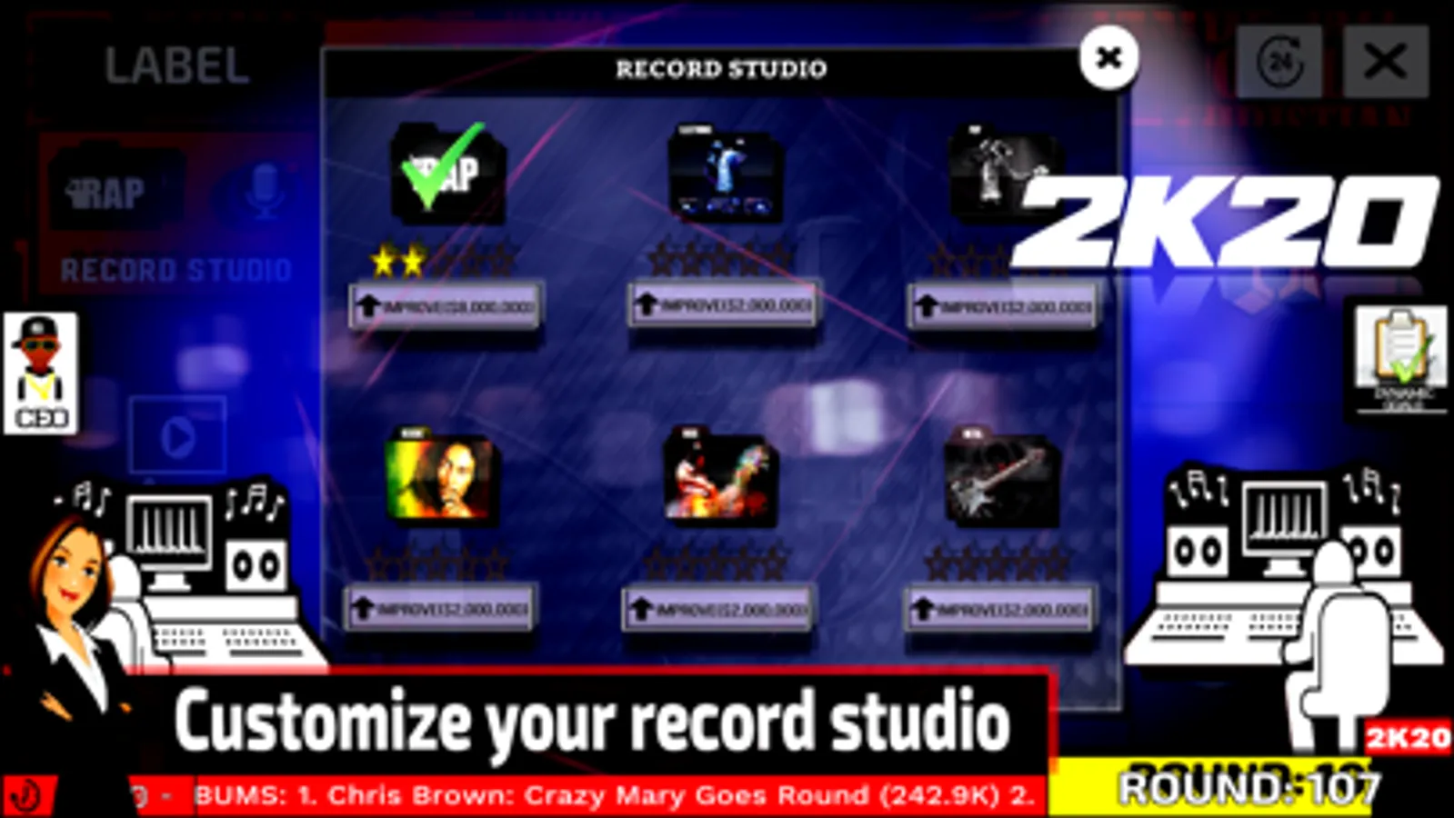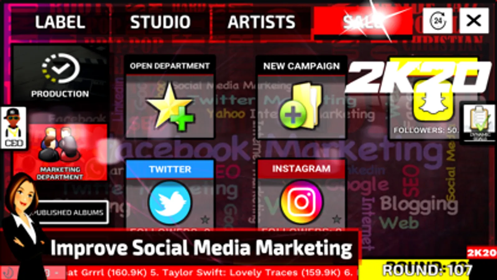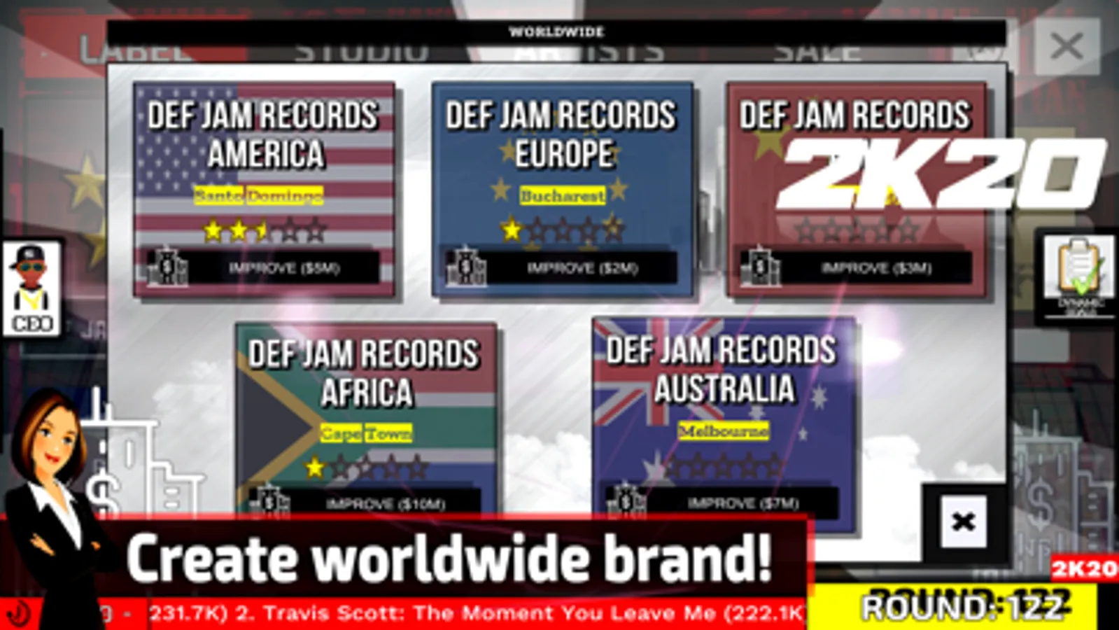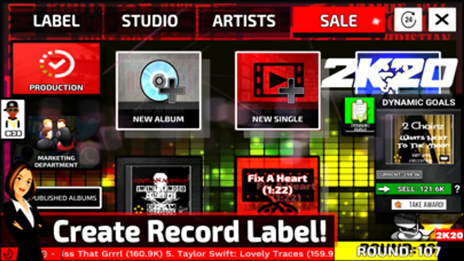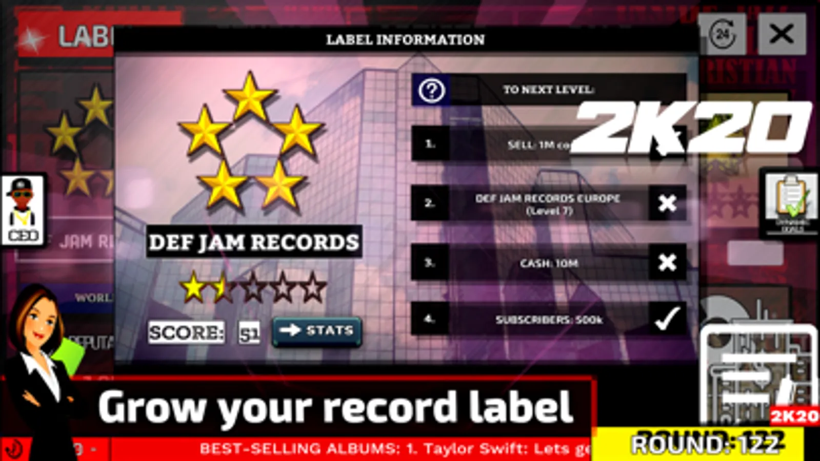 MusicLabelManager is a music industry simulator that allows players to create and run their own record label. Players take the role of CEO and try to make their mark on the music industry. The game has a database with more than 500 real artists, in 3 decades (2020, 2000, 1990). Music awards, singles, concert tours, streaming services and much more!