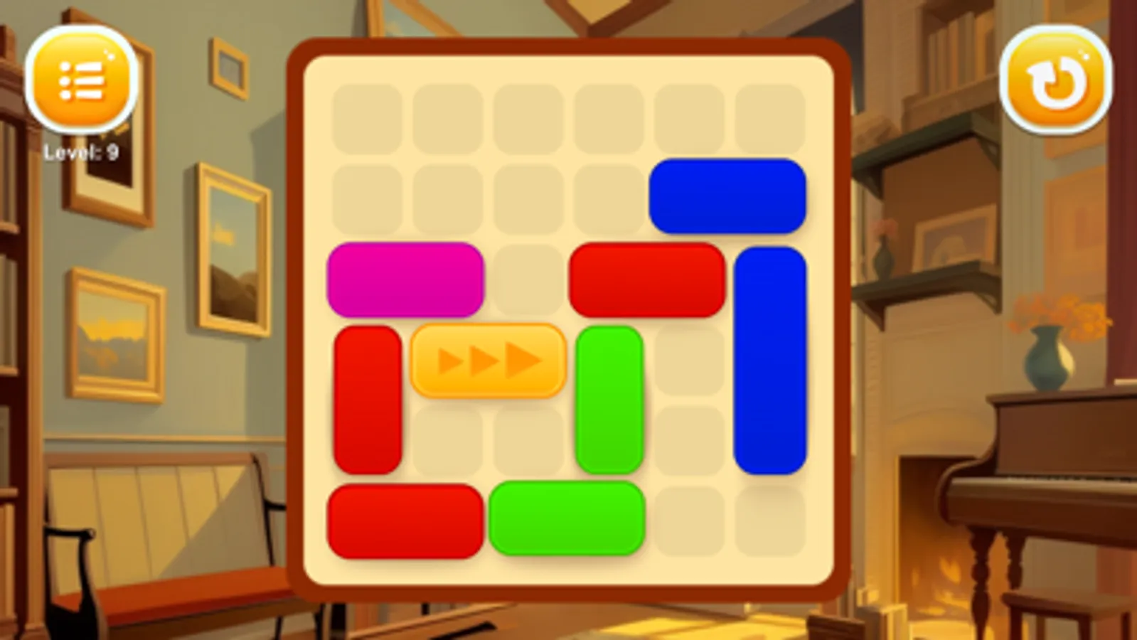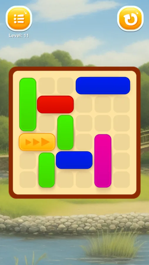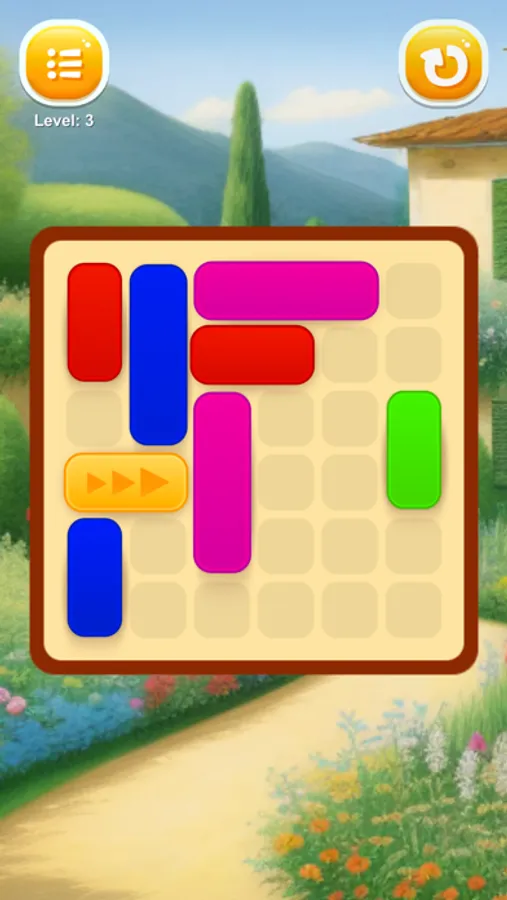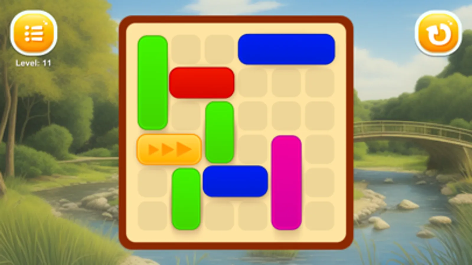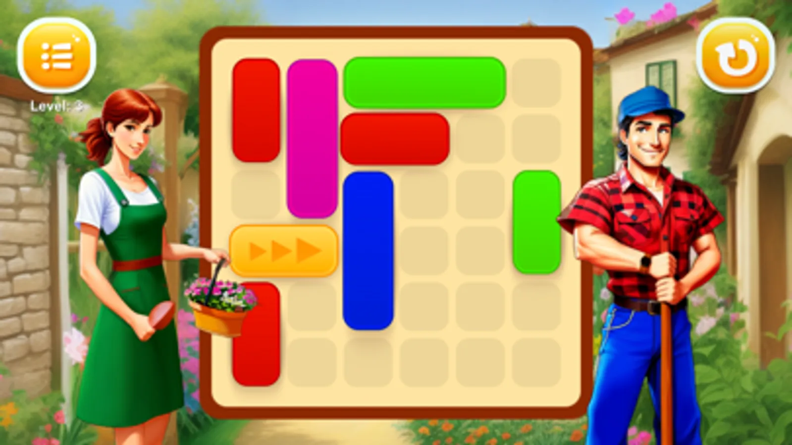 "Garden of Puzzle Games Quest" is a simple block game. The goal is to get the crystal block out of a six-by-six grid full of stone blocks by moving the other blocks out of its way.