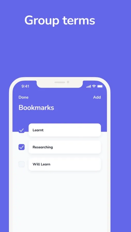 Create your own personalized library by bookmarking your most-used terms for quick reference. Save your favorites to revisit later.