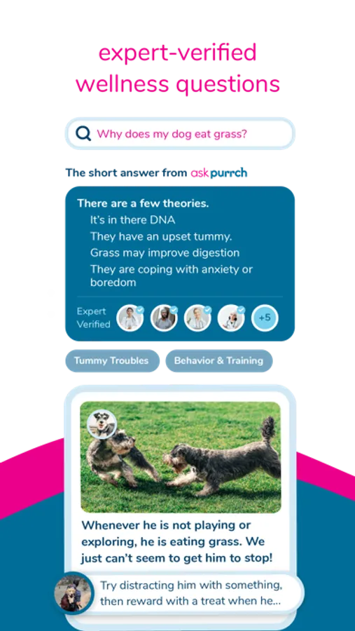 Purrch is the best way to simplify pet life and get you to the right place for your pet. Connect with, and be guided by, topic experts and fellow pet owners navigating the same ups and downs. Swap advice, ask questions, and discover new resources. Our vibrant and interactive community cares as much about your pet's health and wellness as you do. We're a best friend in your back pocket 24/7.