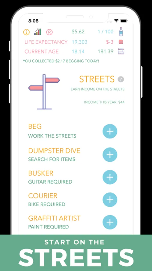 Enter the world as a homeless hobo, beg on the streets or get hired for graffiti, go to university, invest in the market, sell real estate, buy businesses, become a tycoon and more!