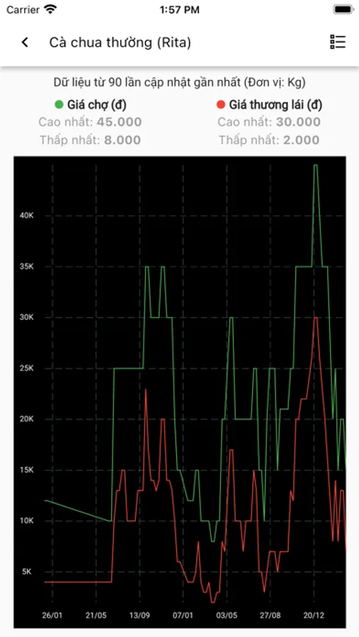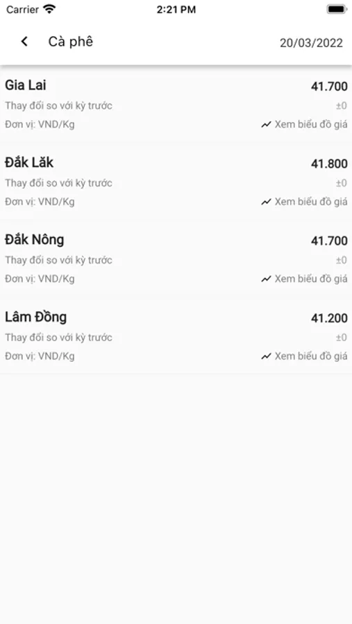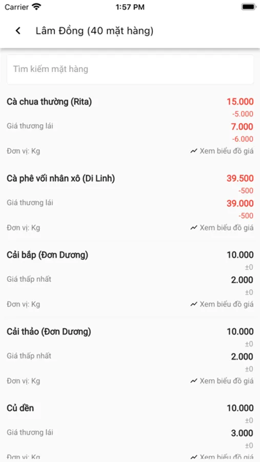 Ứng dụng cung cấp thông tin giá cả nông sản mới nhất và được cập nhật hàng ngày như lúa gạo, trái cây, rau củ, cà phê, hồ tiêu, cao su, thịt các loại, hạt, phân bón...