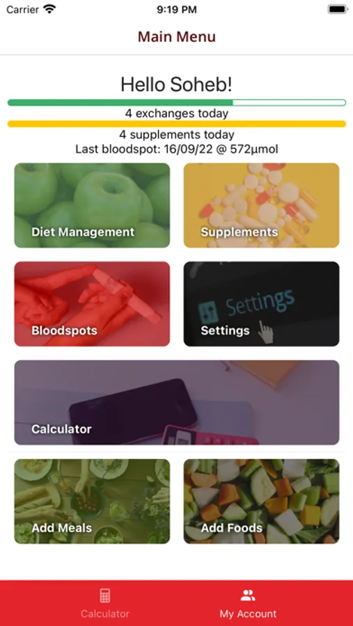 If that isn't enough, there is a diet management section where you can record how many exchanges you are having on a daily basis so you can keep track of all the exchanges you are having, and quickly see if something is taking a lot more of your exchanges than you thought.