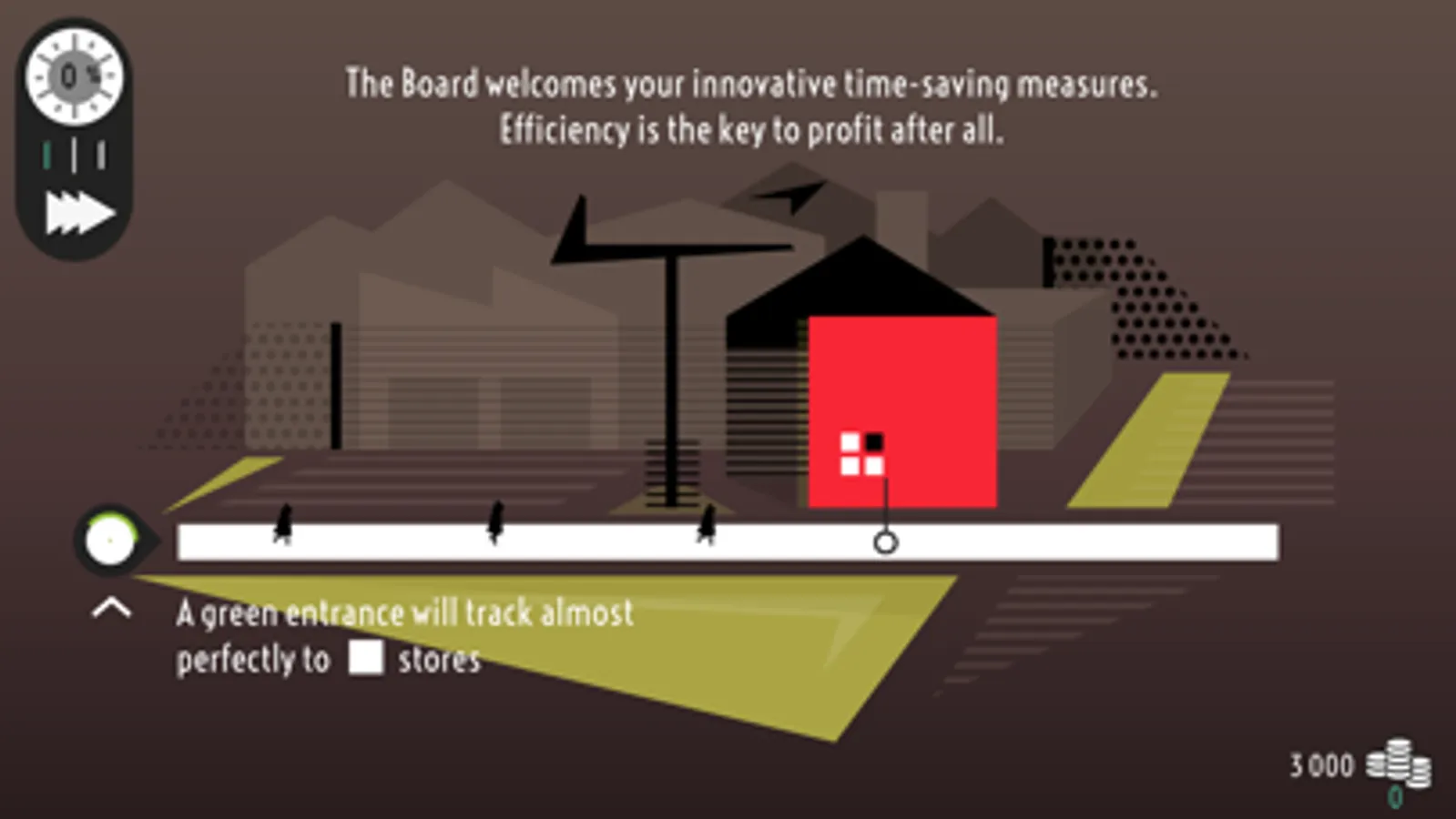 Maximising profit and satisfying the board will require planning. In each city, utilise suspiciously* empty locations and create an inescapable maze of retail opportunities the masses simply won’t be able to refuse!