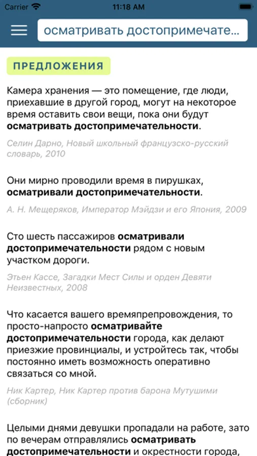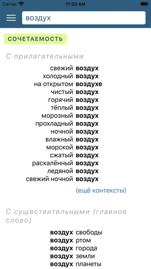 * посмотреть примеры употребления слов и словосочетаний в контексте;