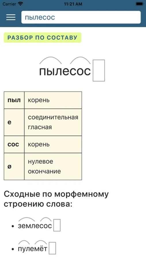 * посмотреть разбор слова по составу и сходные по морфемному строению слова.