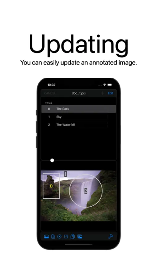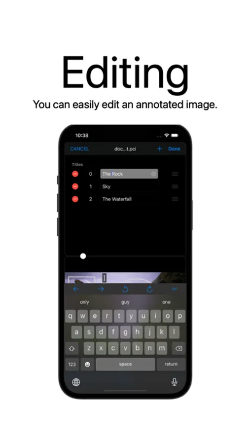 This app is for editing and creating annotated images. Add a comment to the imported image using lines and numbers.