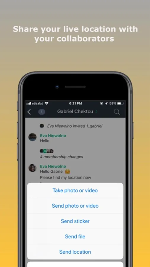 You can also share your location with your colleagues (continued use of GPS running in the background can dramatically decrease battery life).