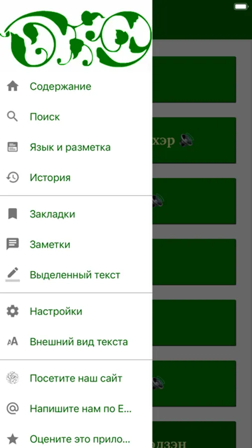 В приложение также включены краткие словари ключевых терминов. Для некоторых книг имеется возможность в режиме онлайн скачивать аудио кабардино-черкесского перевода на Ваше устройство и прослушивать (после первого скачивания возможно прослушивание в режиме оффлайн).
