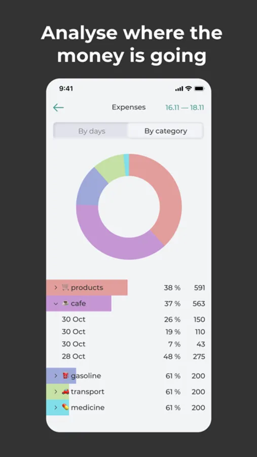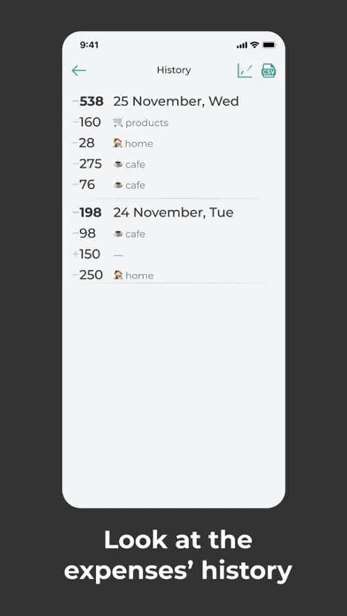 Have you noticed how much money a month is spent on small things, on spending that you don't notice during the day? The money saving app will help you keep simple records and show how much each impulsive purchase reduces your daily budget.