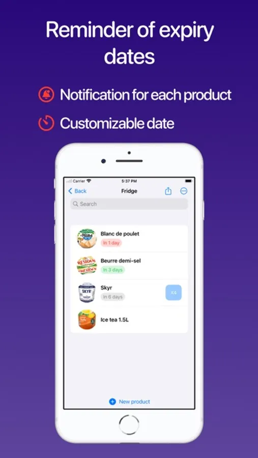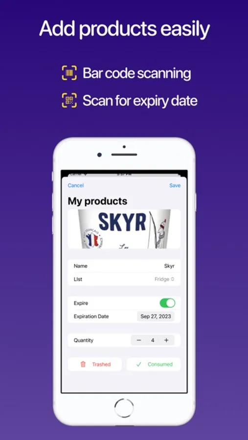 RECEIVE NOTIFICATIONS: A few days before expiration (customizable interval), you'll receive a notification reminding you to consume the product.