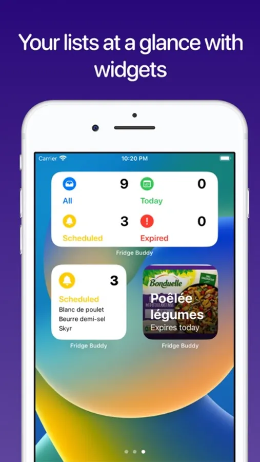 - Smart lists automatically grouping products by category (scheduled, expired, etc.)