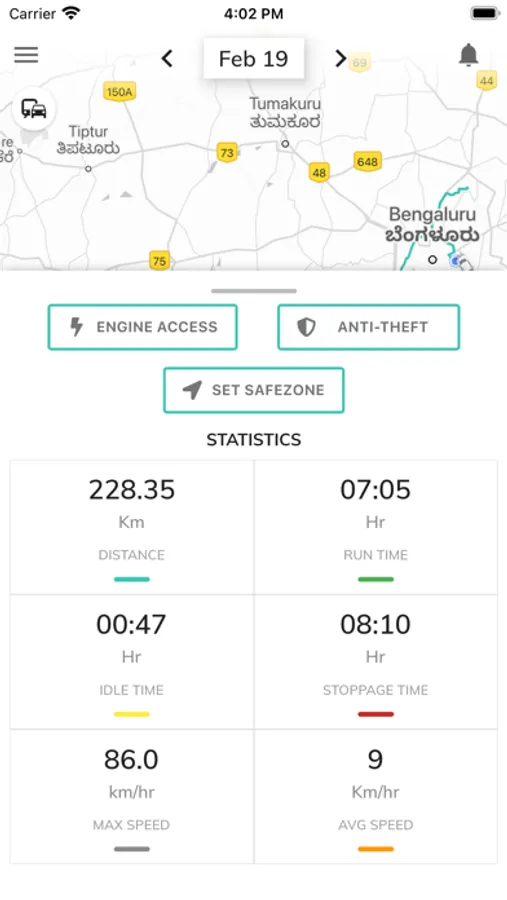5. Daily Stats: Get Total Distance, Run Time, Idle Time, Stoppage Time, Maximum Speed and Average Speed for everyday travel of your vehicle.