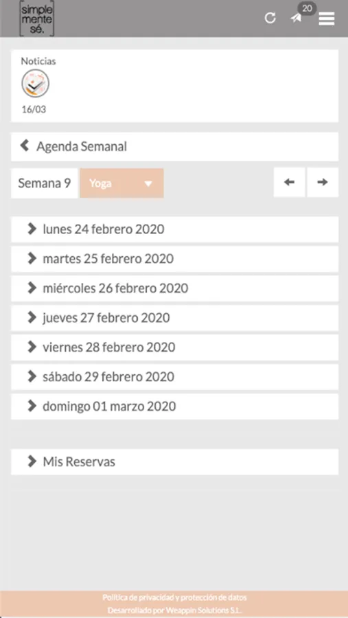 Con la App de Simplementese podrás gestionar tus reservas de clases de Yoga, conocer los talleres y workshop y estar al día con tu Comunidad Simplementese.