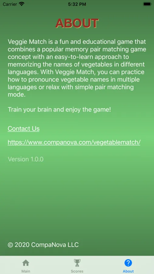 We value the opinion of our customers and are always looking for your feedback and ideas to improve this game. If you have any feedback, questions, or concerns, please reach us at https://www.companova.com/vegetablematch/