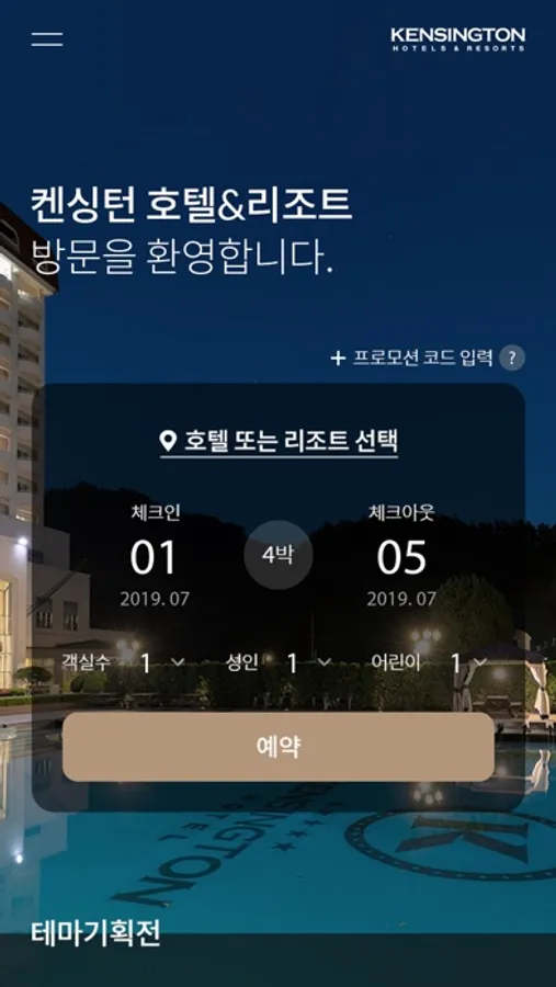 - 켄싱턴 호텔 체인 및 켄싱턴 리조트 체인의 통합 예약을 진행 합니다.