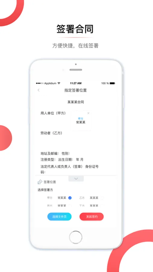 用户直接在您的设备上签署电子合同,当前支持格式(图片、pdf)