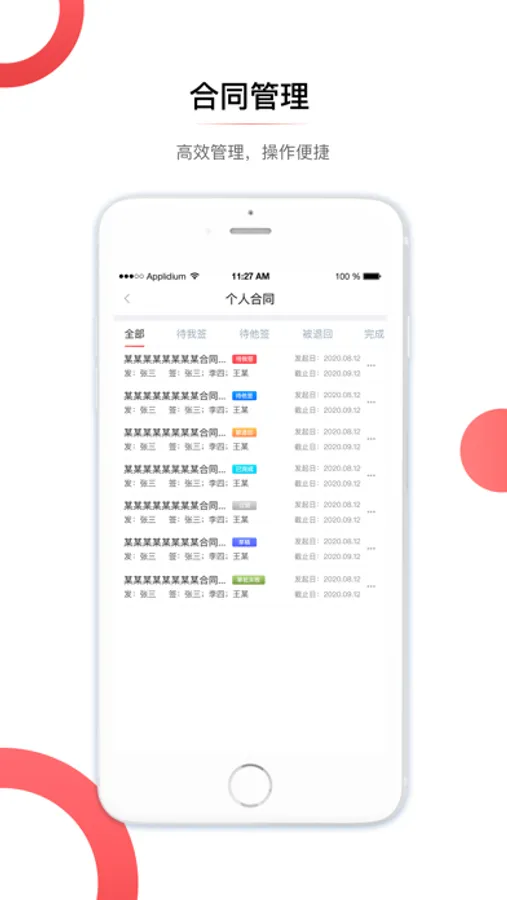 用户可以对自己的电子合同进行分类查询,归档,管理等