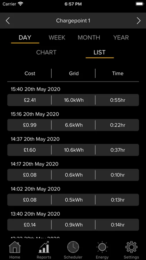 • Get a visual breakdown of your charges on a daily, weekly and monthly basis