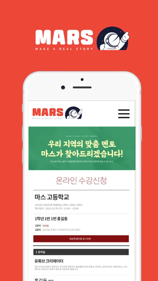 (edumars.net 마스 온라인 플랫폼에서 멘토 회원가입 후, 승인된 멘토에 한해서 ‘마스’ 앱 사용 가능)