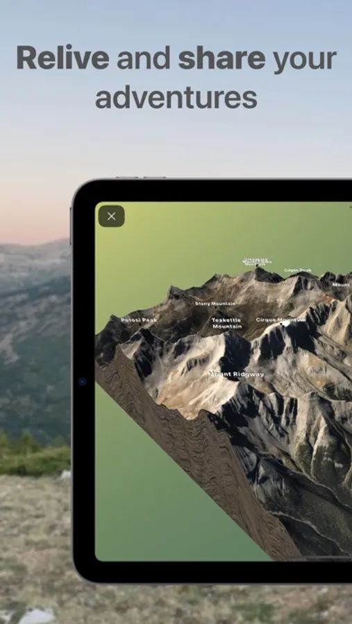 Share your 3D mountain with friends and preview it in iMessage. Export a 3D model of the mountain with your trail and share your experience with friends.