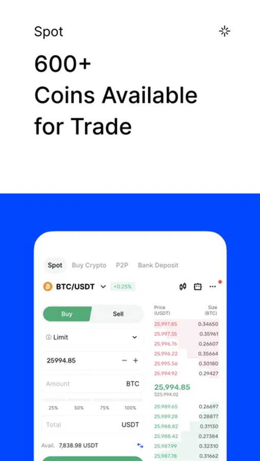 Spot Trading: Enables fast trading of BTC, ETH, XRP and other popular cryptocurrencies
