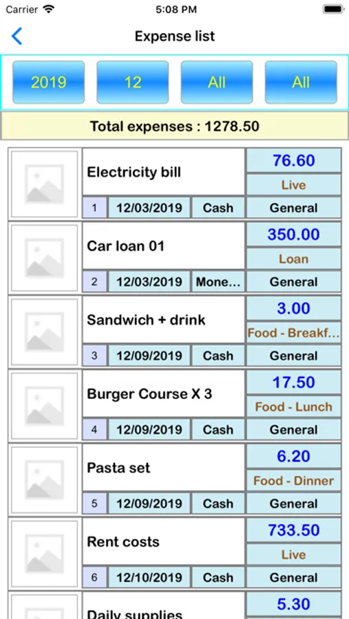 - Details of income and expenditure : The picture and comment fields can be modified, and the picture can be output.