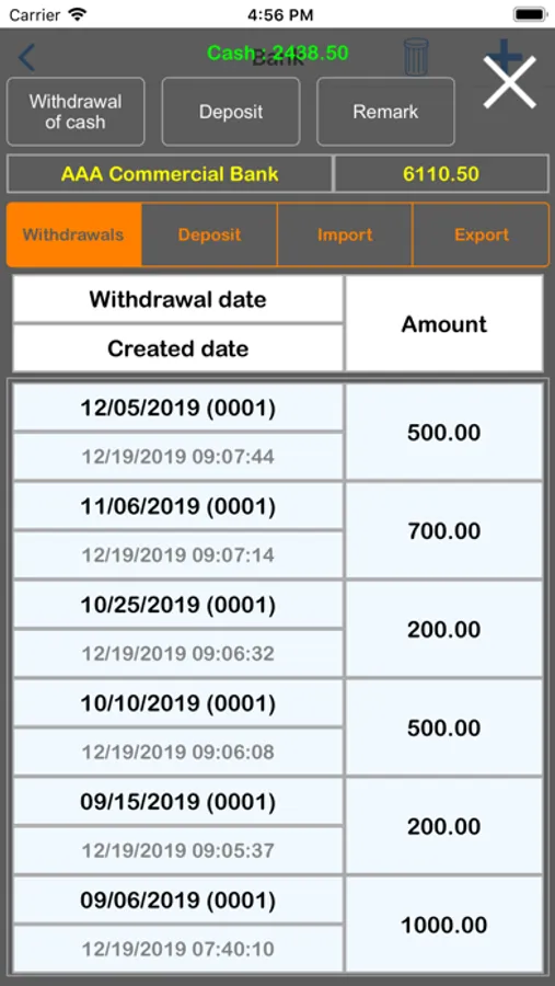 - The main screen can choose to display statistics such as cash, deposits, loans, monthly expenses or monthly income.