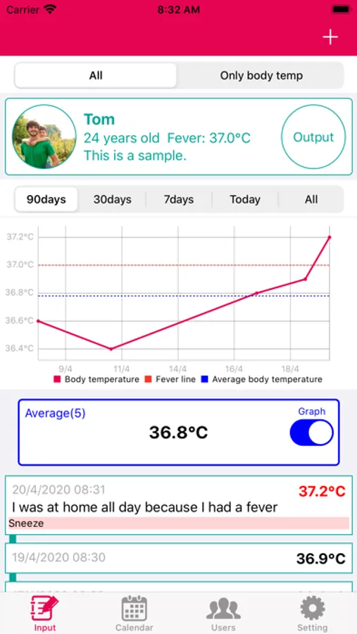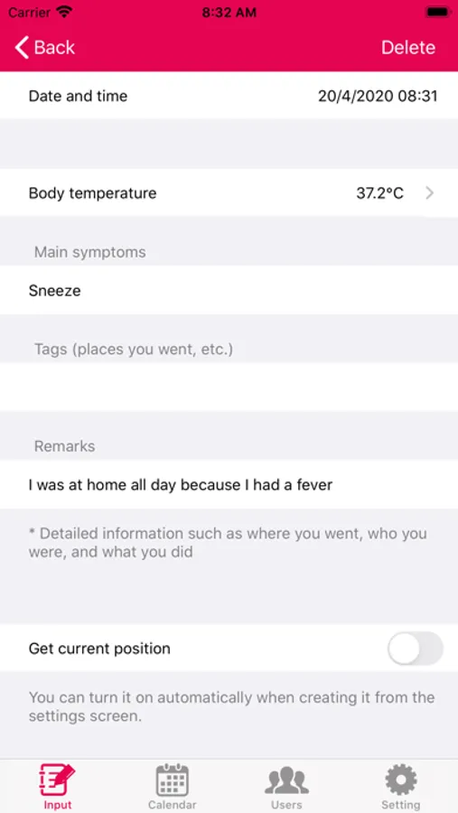 This is an app that allows you to easily record your body temperature and manage a log of actions such as what you did and where you went.