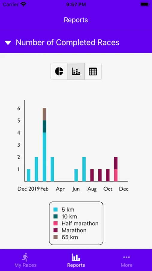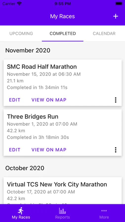 - Calendar and list view of past and upcoming races;