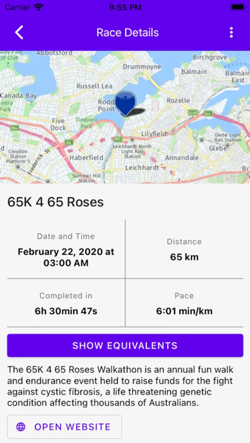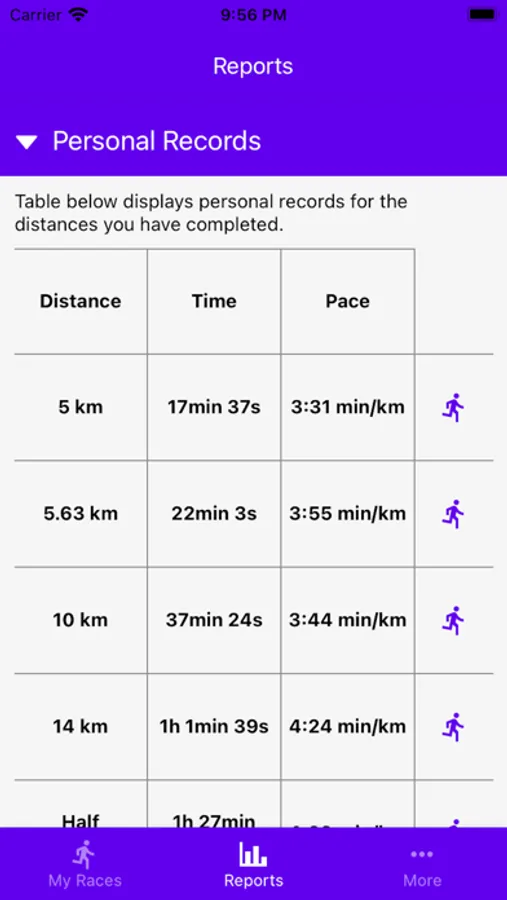 - Overview of the past races with equivalent running performances;
