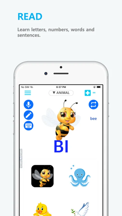 · When you press a word, letter, or number, the pronunciation of the selected learning language is heard.