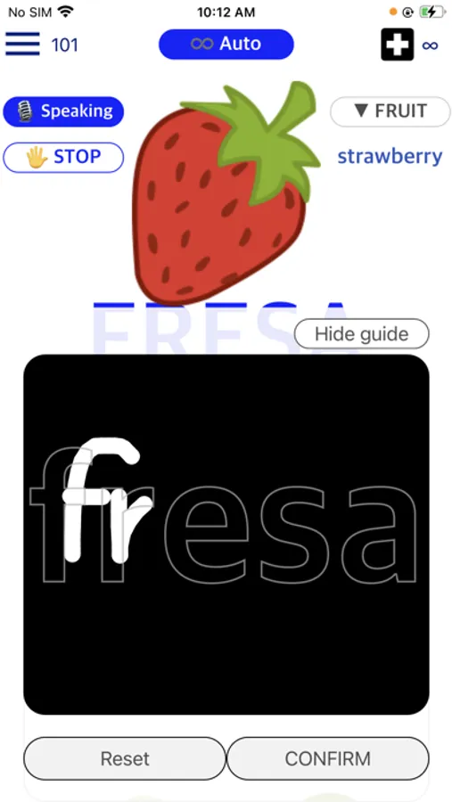 · When you press a word, letter, or number, the pronunciation of the selected learning language is heard.